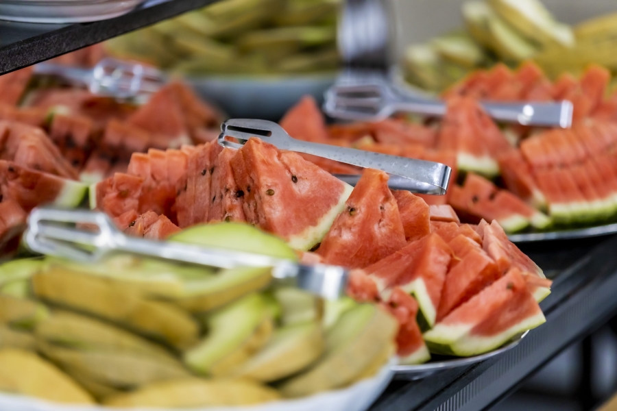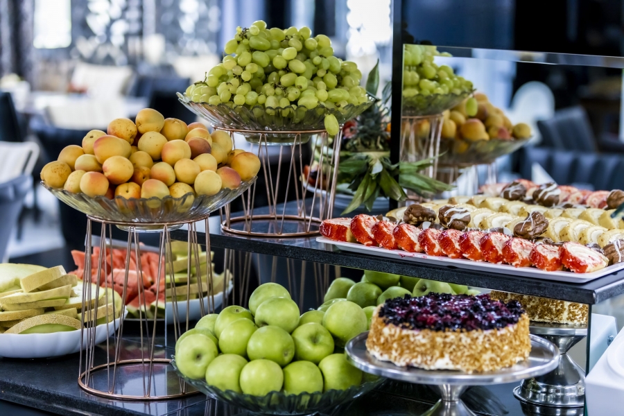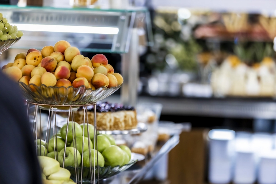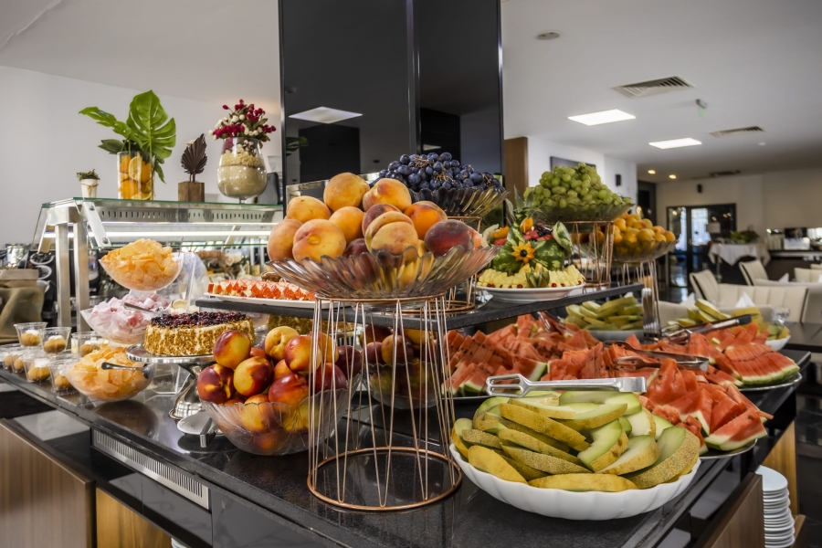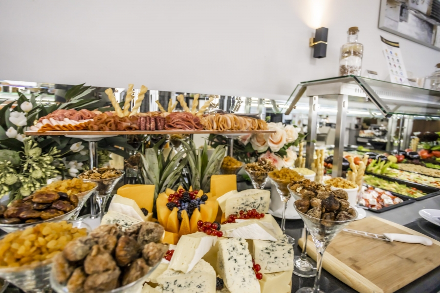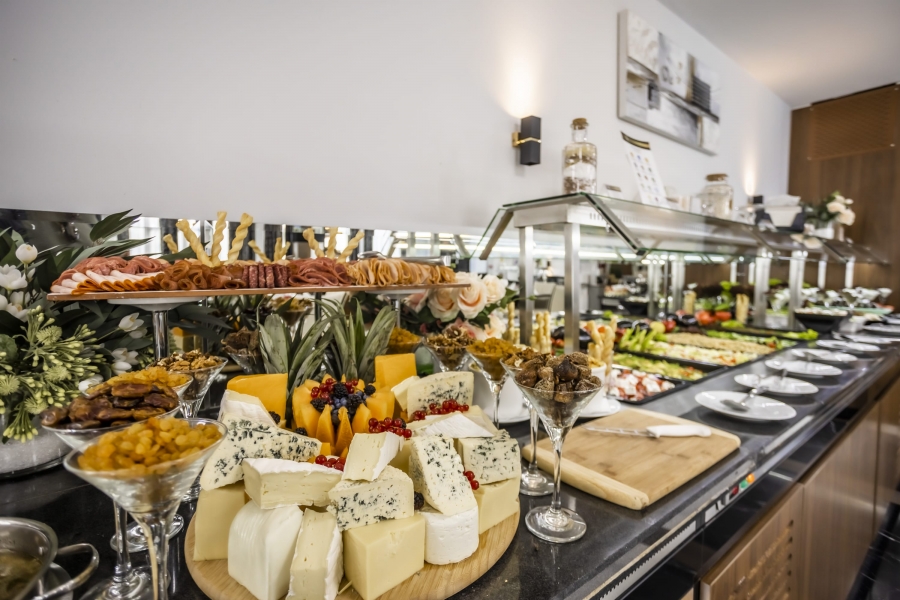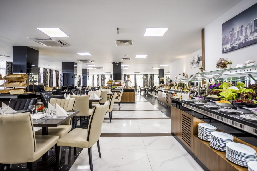 Hotelowa restauracja została zaprojektowana i urządzona w nowoczesnym stylu. Mieści 240 gości w pomieszczeniach i 120 na tarasie restauracji. Nasz szef kuchni przygotowuje urozmaicone i wyśmienite dania z kuchni międzynarodowej, podawane na stole w formie bufetu. Do wyboru są sałatki, zupy, przystawki, dania główne, desery, owoce i lody.
