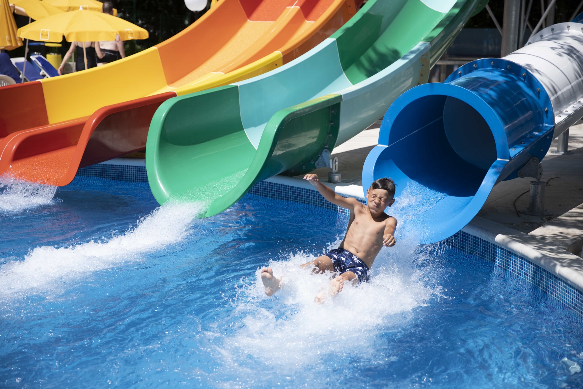 - outdoor pool with big and small water slides, fountain, jaccuzzi